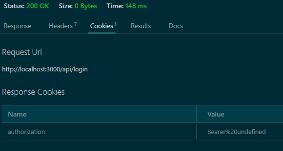 이 경우 컨트롤러에서 `const { token }`을 사용해도 분해할 객체가 없어서 `token`은 `undefined`가 됩니다.