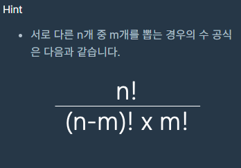 서로 다른 n개 중 m개를 뽑는 경우의 수 공식