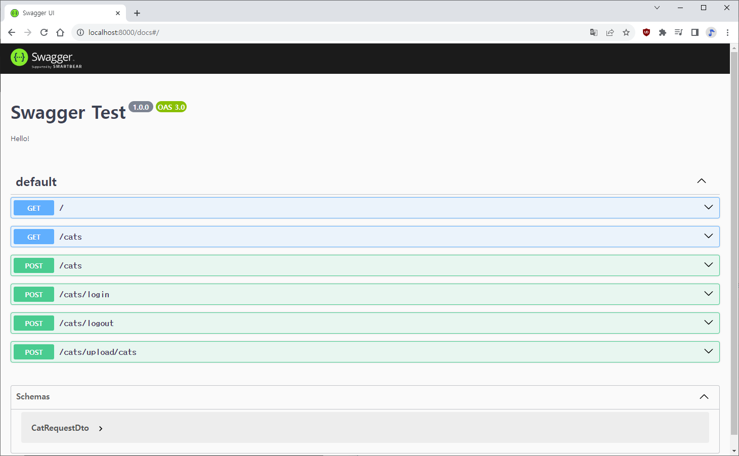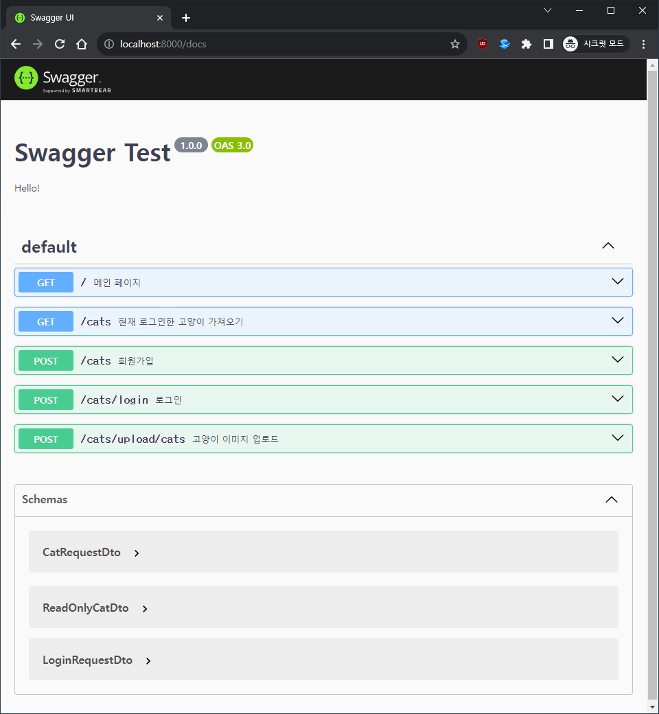 지금까지 작성한 API의 문서가 완성되었음을 확인할 수 있다.
