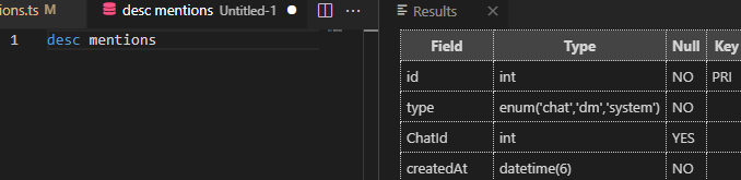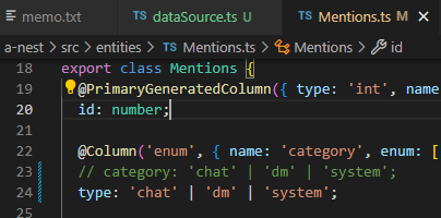 1. 테스트를 위해 Mentions 엔티티에서 'category' 컬럼의 이름을 'type'으로 수정하였다.
