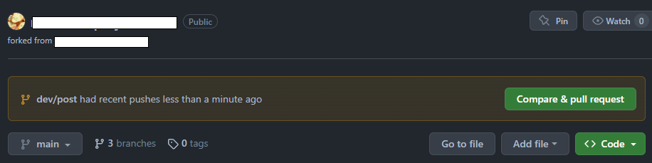 3. 원본 리포지터리를 확인해보면 compare & pull request 버튼이 활성화 되어있음